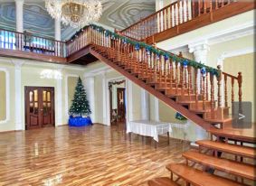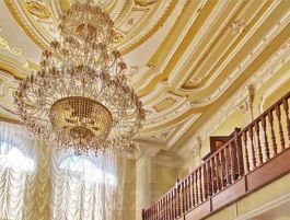 Классический интерьер, хрустальная люстра, большая лестница для ваших фото.