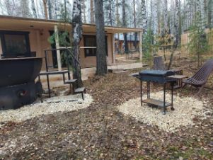 Для наших маленьких гостей рядом с домиками мы расположили батутный парк с большими батутами диаметром 4,5 метра пользование которыми абсолютно бесплатно.