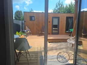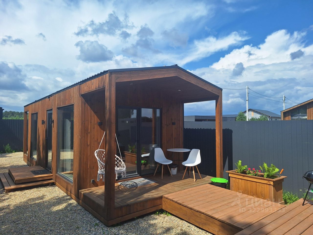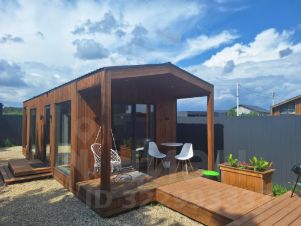 Hовый дом 40 м2 c панopaмными окнами и крытой террасой, тёплый бассейн и баней из кедра