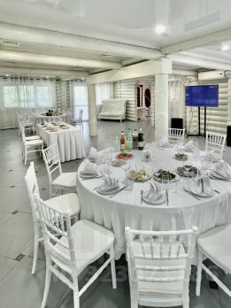 Просторный банкетный зал, баня, чан. Подходит для любых мероприятий - свадьбы, дня рождения, корпоратива, нового года, выпускного, а также семейного отдыха и дружеских встреч.