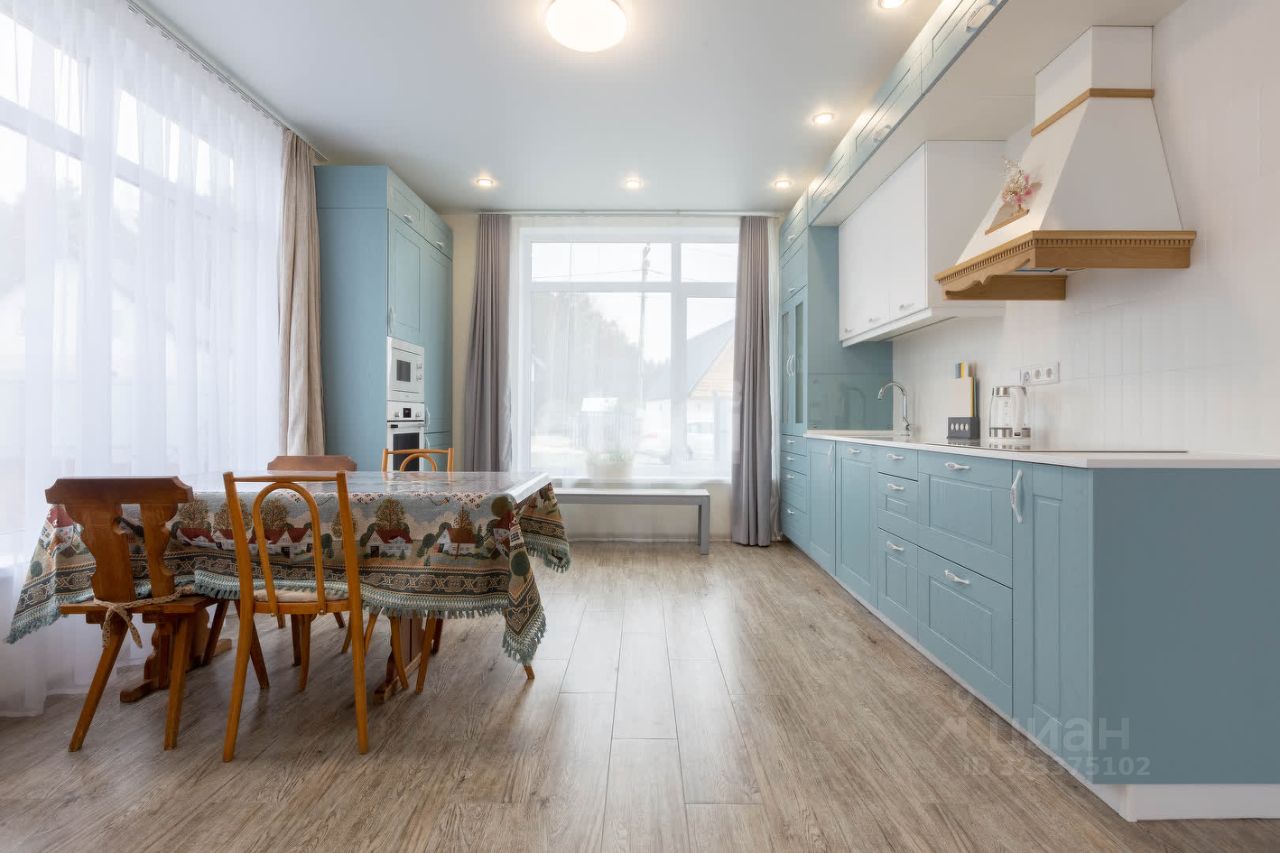 В доме большая кухня-гостиная, кабинет гостевая и 3 спальни.