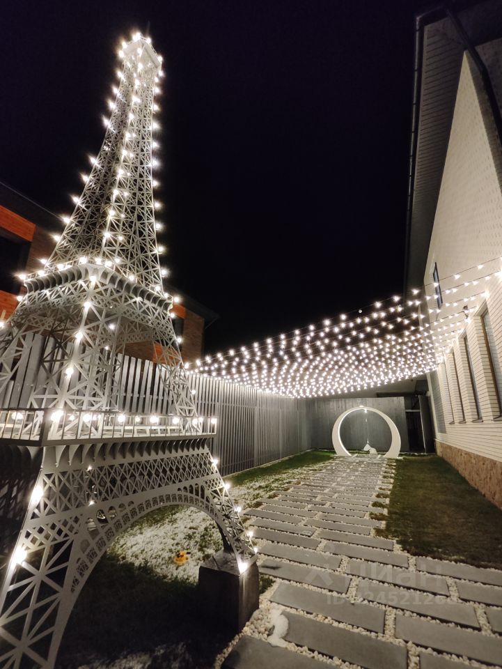 Красивая ухоженная территория коттеджа с хорошим освещением. Есть парковка для авто на 10+ автомобилей.