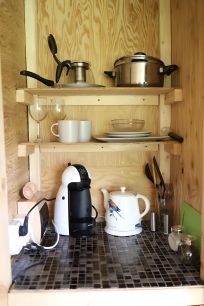 Кухонный уголок оснащен : холодильником, плиткой, микроволновкой, кофемашиной, чайником. Наш фирменный чай и кофе , как комплимент всем гостям