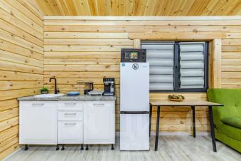 Просторная кухня-гостиная: варочная панель, микроволновка, чайник, холодильник, вся необходимая посуда.
