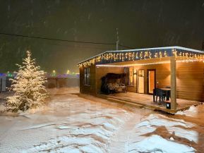 Новый теплый дом (40 м²) + просторная терраса (18 м²) с качелями и столиком.