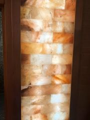 *В парной стенка из Гималайской соли( профилактика Орви)и полками толщиной 9 см ( за счет этого они не нагреваются).