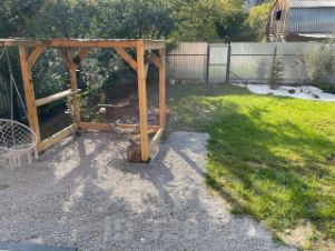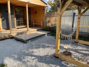 Терасса уютных не шумных посидело, с барной стойкой и скамейкой. Мангальная зона под крышей.