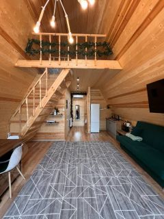 • 6 спальных мест: двухспальная кровать на втором этаже, на первом этаже два раскладных дивана.