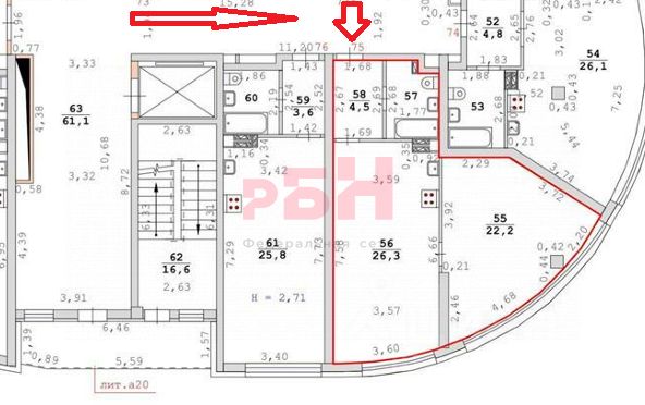 Предлагается к продаже помещение свободного назначения, общей площадью 57,3 кв метра. Имеет статус апартаментов.