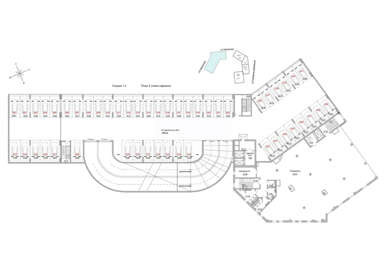Коммерческие и офисные площади размещаются в секции 1.1 и на 3-х этажах делового центра (секция 1.3).