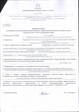Получены тех условия на подключение газа и разрешение на строительство подъездных путей.