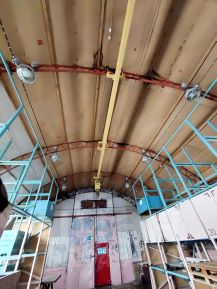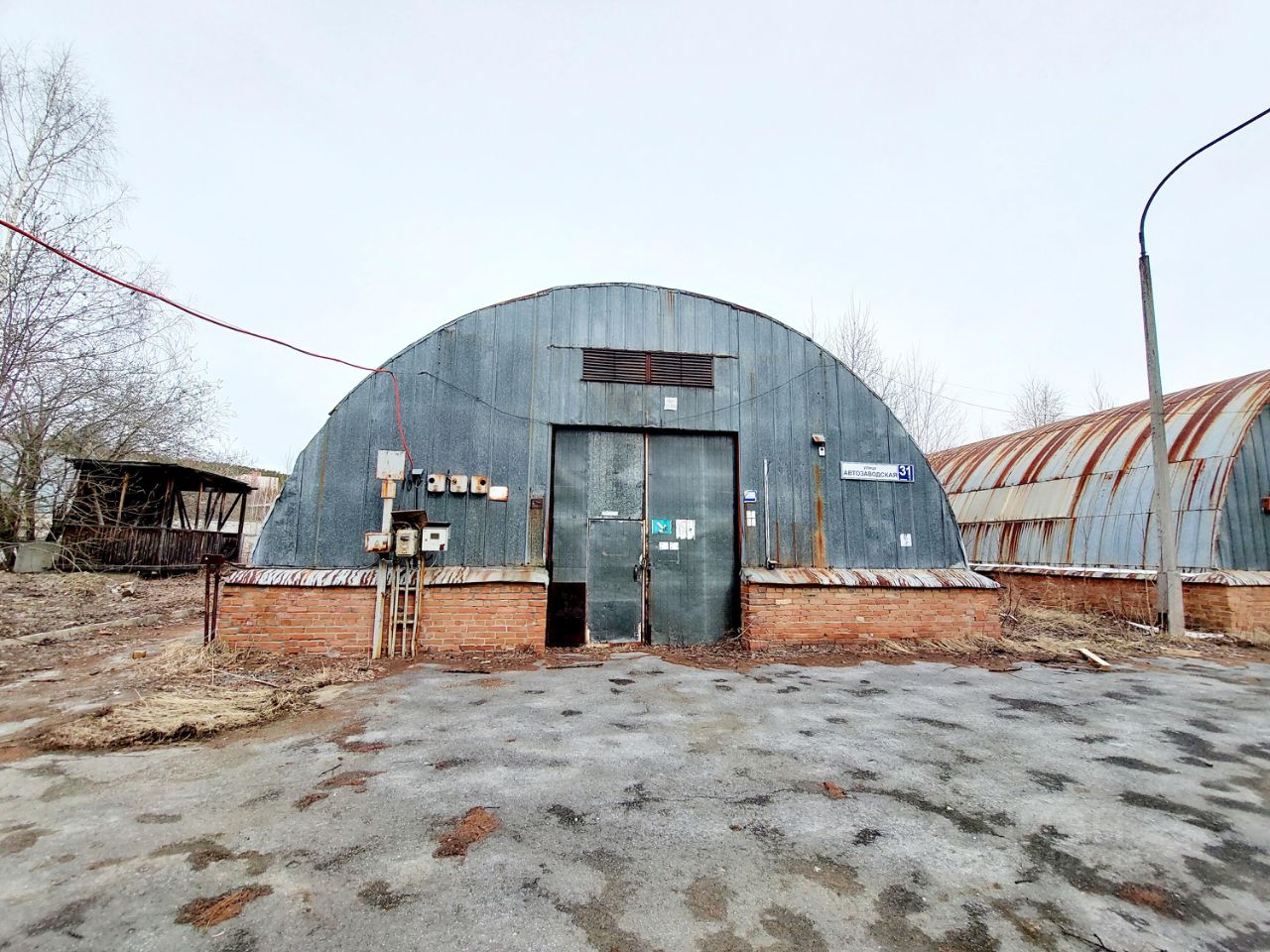 6.Здание склада 6 , площадь 492,0 кв.м., год постройки 2000 г., высота 6 метров, сборные металлоконструкции — типа Ангар с секционными воротами, полы бетон, ворота на нулевой отметке.