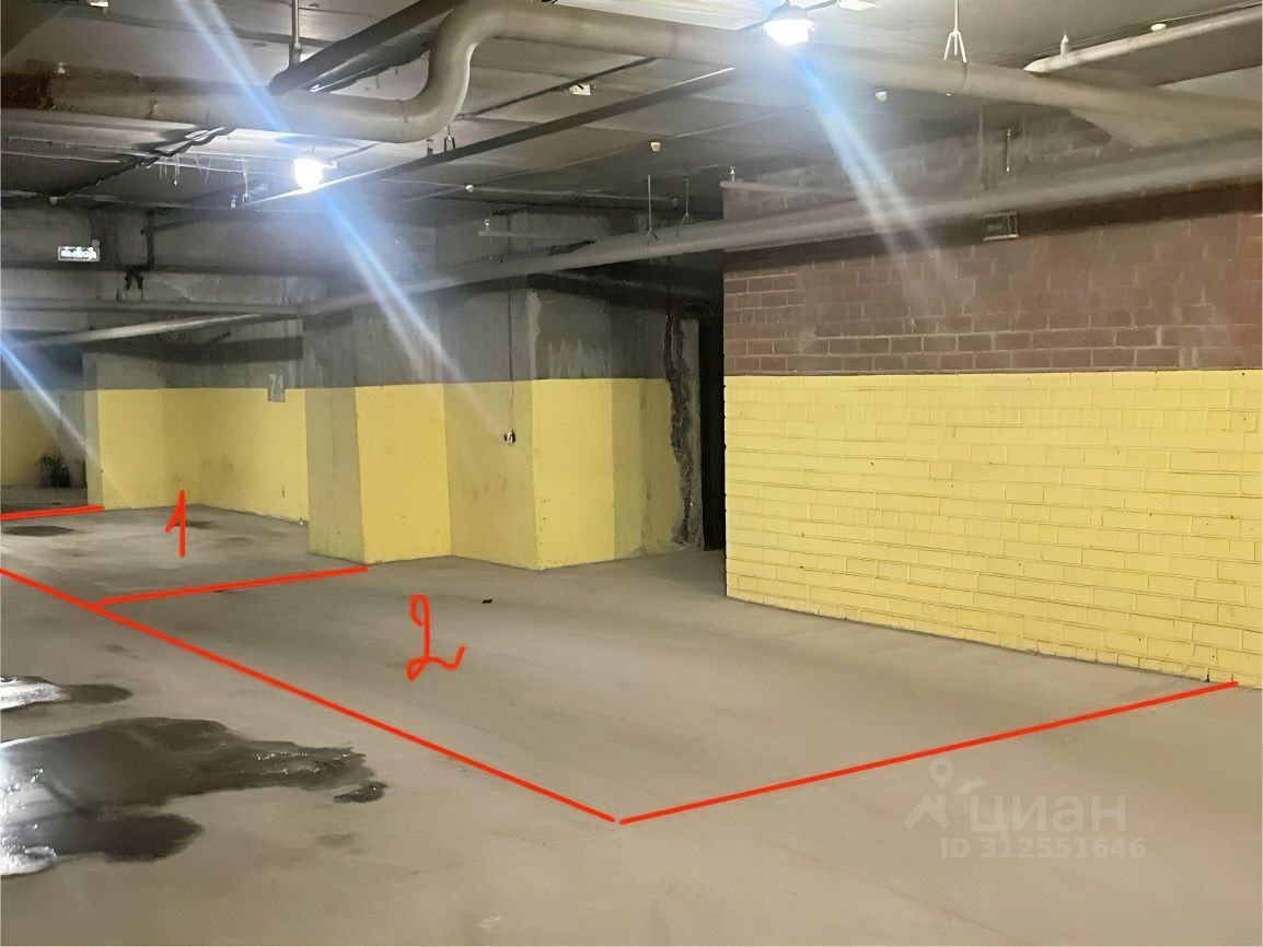 Продается подземный паркинг 45,9 кв м. на 2 машины, на -1 этаже, лифт спускается до паркинга. Сухо, тепло, светло. Собственник.