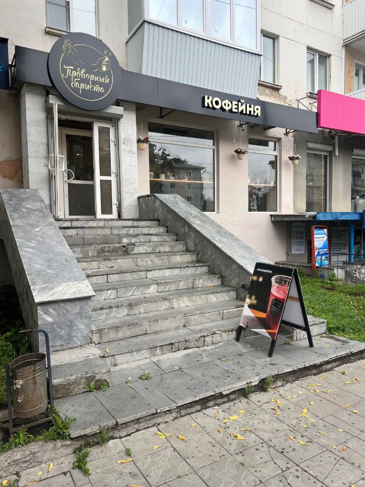 Продается помещение, сейчас там действующая кофейня, до этого сидел вейпшоп. Помещение подходит для любого назначения, хороший ремонт, есть отдельный туалет, есть кондиционер на летнее время. Зимой в помещении тепло. Большие окна, у окна специальная барная стойка.