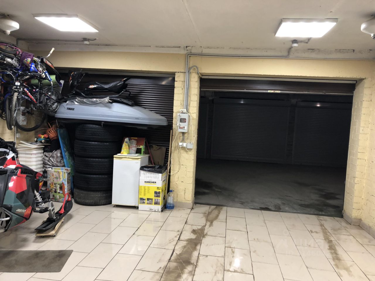 Два подземных гаража объединены в один. Минус второй этаж. Круглогодично сухой. На полу плитка. Светодиодные светильники с датчиками движение. Рольставни с электроприводом. Стеллажи вдоль стены. Установлены розетки на всех стенах. Пишите сообщения, на телефон редко отвечаю