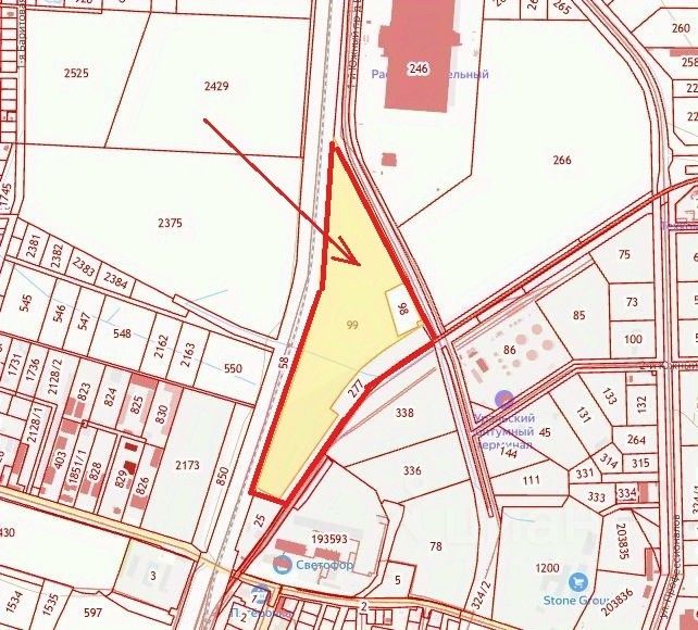 Участок расположен в зоне производственно-коммунальных объектов ПК-1, общая площадь: 13,32 га. Имеет следующие кадастровые номера: