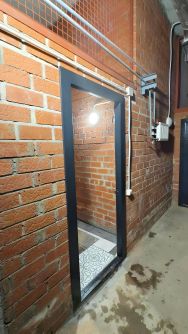 Потолки 3.7 м позволяют расположить много стеллажей по высоте стены, площадь 4.8 м2 по контуру стен.