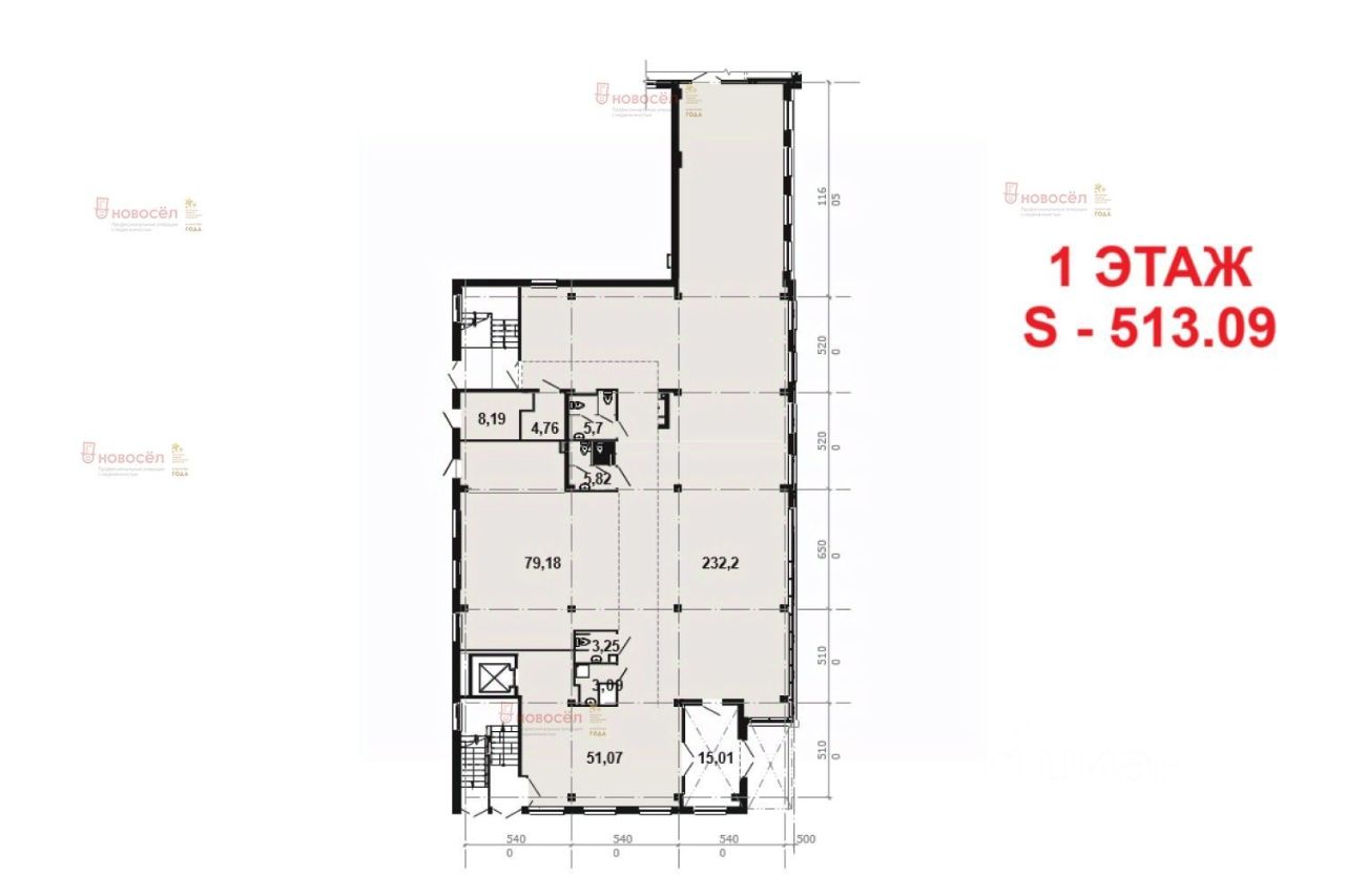 Описание объекта: 1 этаж, 513,09 м²; высота потолков 4,78 м. Панорамное остекление. Отдельные входы на каждый этаж. Индивидуальные счётчики отопления и водоснабжения Возможность гибкой планировки и возведения стен под ваш проект.