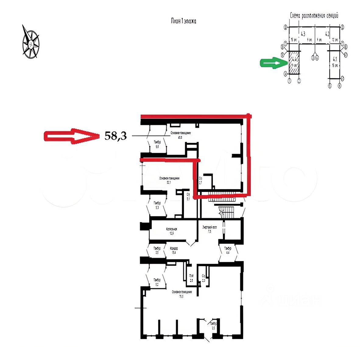 Площадь — 58,3 кв. М.