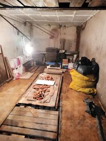 Имеется овощная яма, со стеллажами. Требуется косметический ремонт, потолок утеплённый