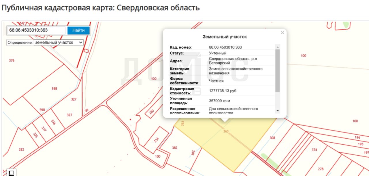 Кадастровый номер: 66:06:4503010:363.