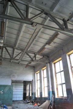 Здание общей площадью 389 кв. м, максимальная высота потолка 7 м, есть ворота для въезда. Несколько лет назад проведен капитальный ремонт: заменена крыша, укреплен фундамент, оштукатурен фасад, установлены новые окна и двери.