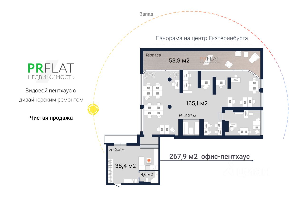 Эксклюзивное предложение, звоните! Продам представительский офис-пентхаус с дизайнерской отделкой в самом сердце Екатеринбурга, по адресу Белинского, 30. С собственной видовой террасой.