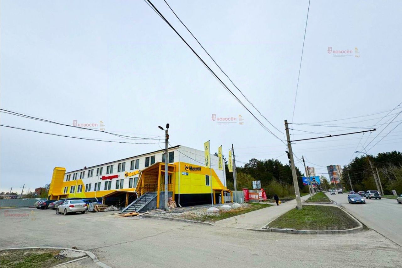 Высокий автомобильный трафик вдоль здания, рядом остановки общественного транспорта "ТК Академический".