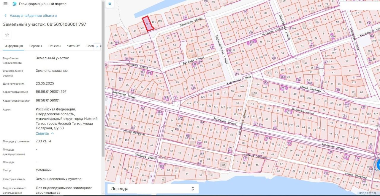 Лот 1. Земельный участок для индивидуального жилищного строительства. Категория земель земли населенных пунктов. Кадастровый номер 66:56:0106001:797. Местоположение: Российская Федерация, Свердловская область, муниципальный округ город Нижний Тагил, город Нижний Тагил, улица Полярная, з/у 68. Площадь земельного участка 733 кв. метра. Разрешенное использование земельного участка для индивидуального жилищного строительства. Начальная цена (рыночная стоимость земельного участка) 799 000 (семьсот девяносто девять тысяч) рублей. "Шаг аукциона" 39 900 (тридцать девять тысяч девятьсот) рублей. Размер задатка 159 800 (сто пятьдесят девять тысяч восемьсот) рублей