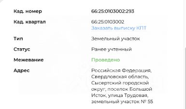 Арт. 116613238 Продам участок (кадастровый номер 66:25:0103002:293)