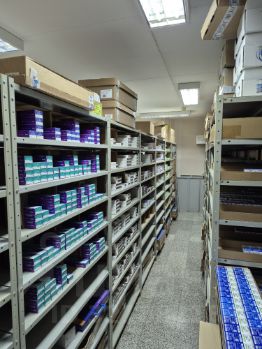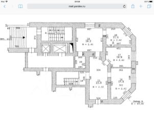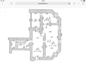 Расположено в двух уровнях : первый этаж (~100м) и высокий цокольный этаж с окнами (~90м).