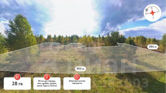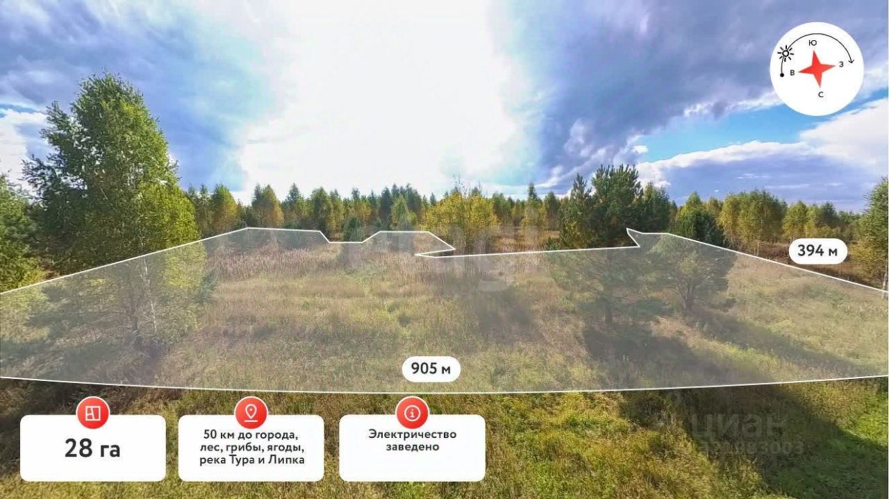 Земельный участок площадью 28 га расположен в районе деревни Бурмакина, в 50 км от Тюмени по Ирбитскому тракту.