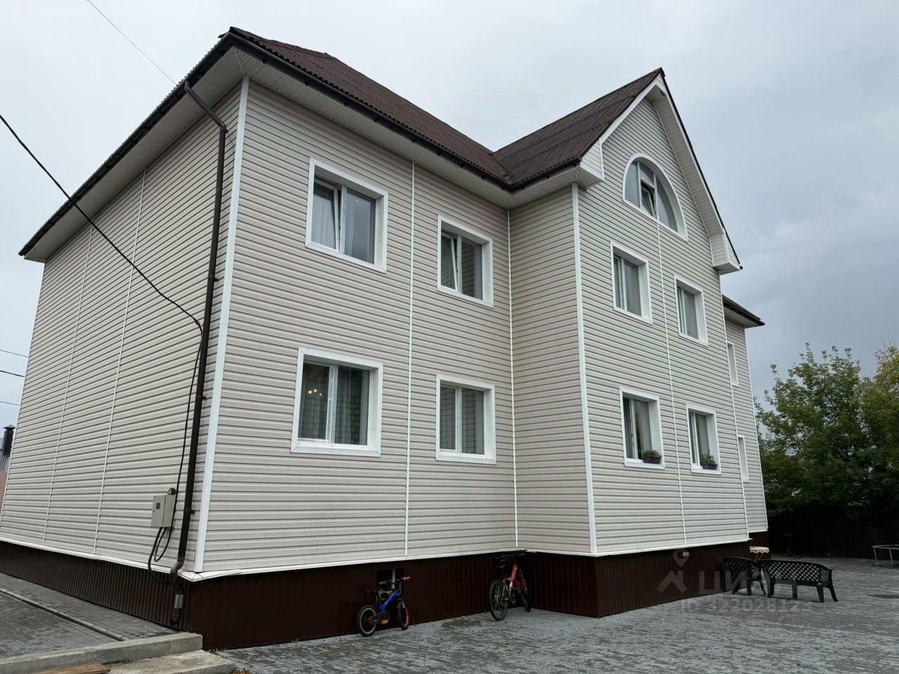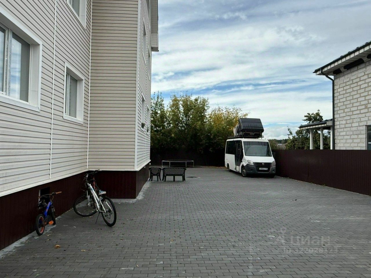 Дом расположен на земельном участке, который вымощен полностью тратуарной плиткой,