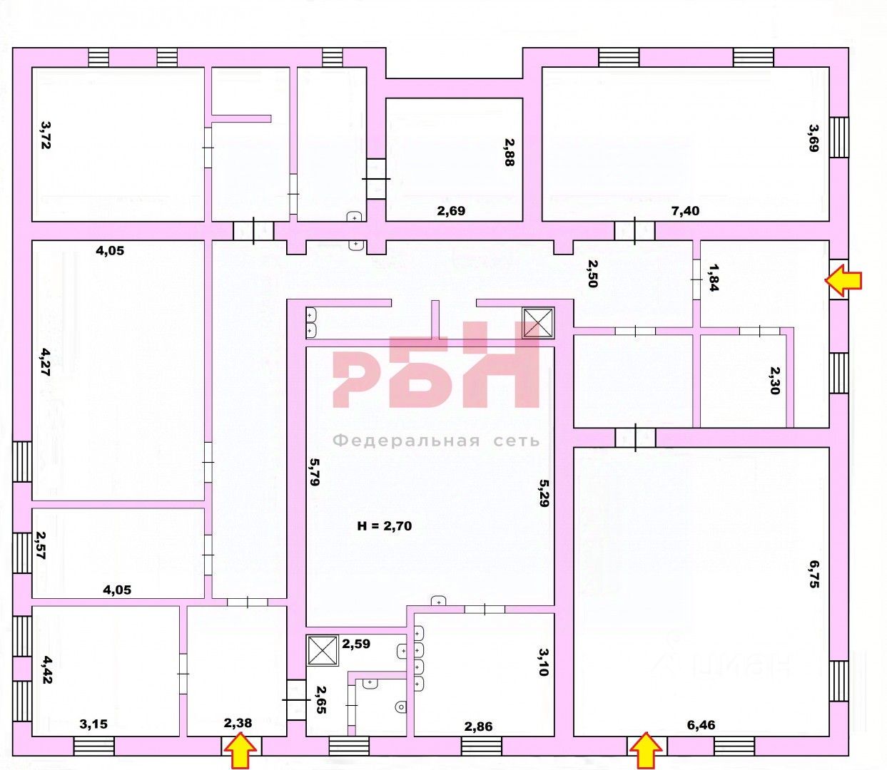 - высота потолков - 2, 7 м;