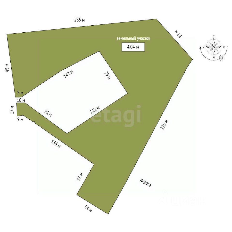 Продаем земельный участок площадью 4,5га, состоящий из пяти земельных участков разной площади.
