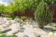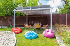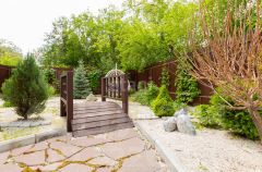 Ландшафтный дизайн,мостик, качель- кокон , переносные цветные пуфики .