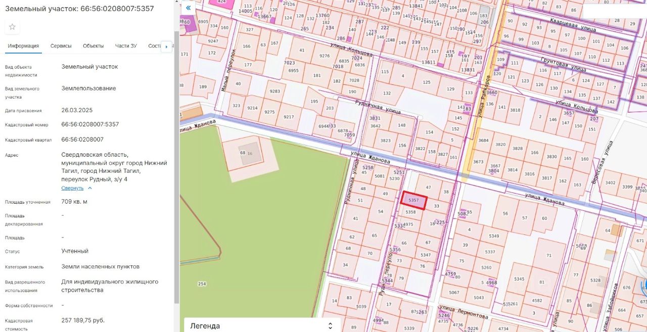 Лот 2. Земельный участок для индивидуального жилищного строительства. Категория земель земли населенных пунктов. Кадастровый номер 66:56:0208007:5357. Местоположение: Свердловская область, муниципальный округ город Нижний Тагил, город Нижний Тагил, переулок Рудный, з/у 4. Площадь земельного участка 709 кв. метров. Разрешенное использование земельного участка для индивидуального жилищного строительства. Начальная цена (рыночная стоимость земельного участка) 178 000 (сто семьдесят восемь тысяч) рублей. "Шаг аукциона" 8 800 (восемь тысяч восемьсот) рублей. Размер задатка 35 600 (тридцать пять тысяч шестьсот) рублей