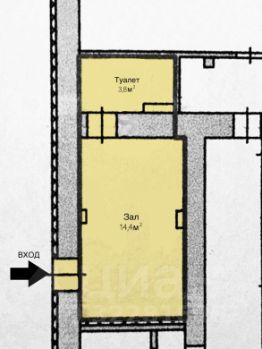 Помещение на первом этаже 18,2м ², высокие потолки 3,6м, просторный туалет с местом еще под душевую кабину.