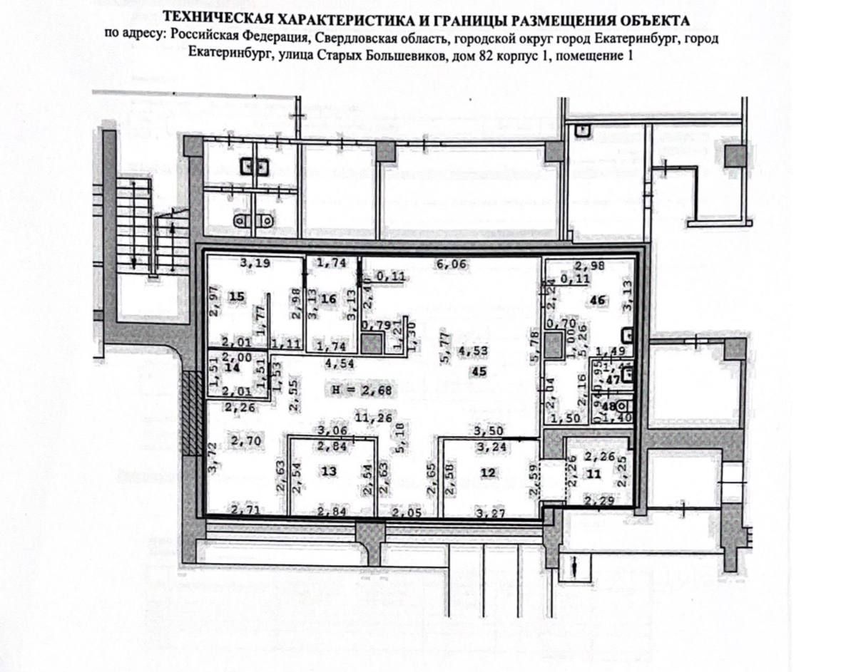 Продаётся нежилое помещение площадью 109,6 м² на 1-м этаже коммерческого здания по адресу: Екатеринбург, ул. Старых Большевиков, 82, корп. 1.
