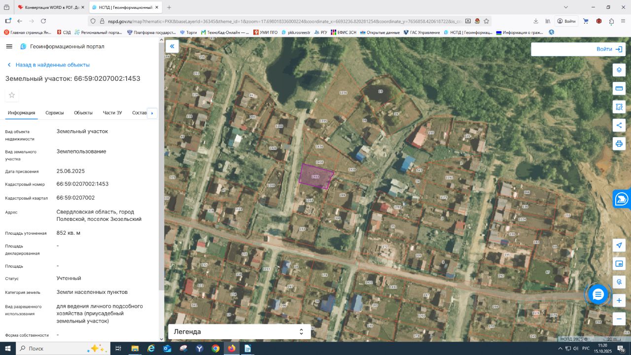 Продажа земельного участка, расположенного по адресу: Свердловская область, город Полевской, поселок Зюзельский, с кадастровым номером 66:59:0207002:1453, площадью 852 кв.м, категория земель земли населенных пунктов, с видом разрешенного использования личное подсобное хозяйство (приусадебный земельный участок)