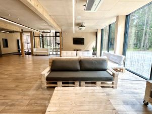 - главное здание - 700 кв.м. с тремя залами-трансформерами вместимостью до 200 человек, профессиональная кухня и отдельная зона для сотрудников