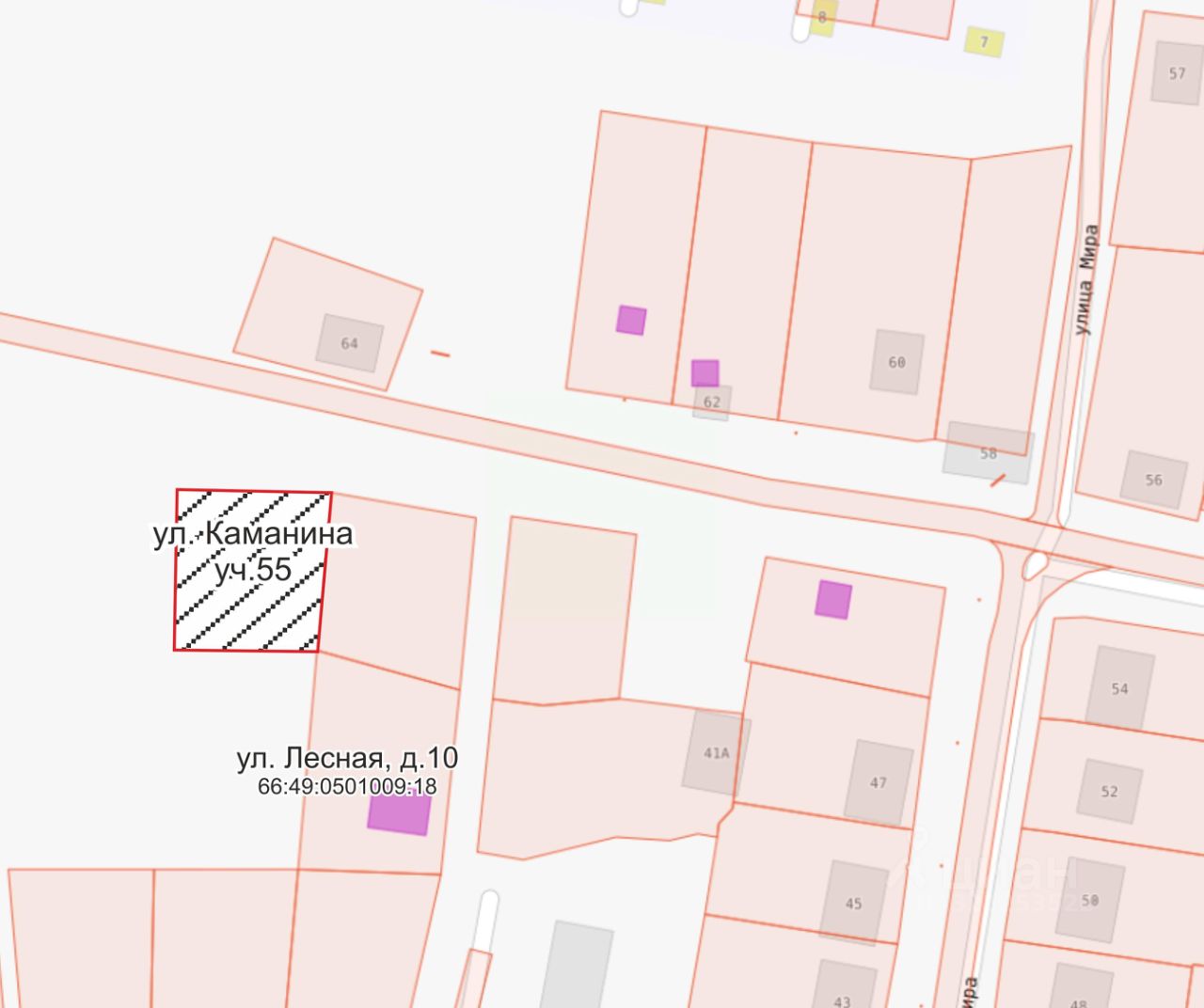 Земельный участок с кадастровым номером 66:49:0501015:181, общей площадью 1189,0 квадратных метров, местоположение: Свердловская область, город Кировград, улица Каманина, участок 55