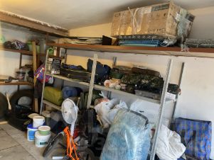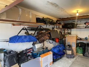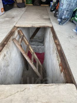 Есть смотровая и овощная яма, электричество, бетонный пол, Перед гаражом залито бетонное покрытие. Внутри , по всему периметру сварены полки для хранения вещей.