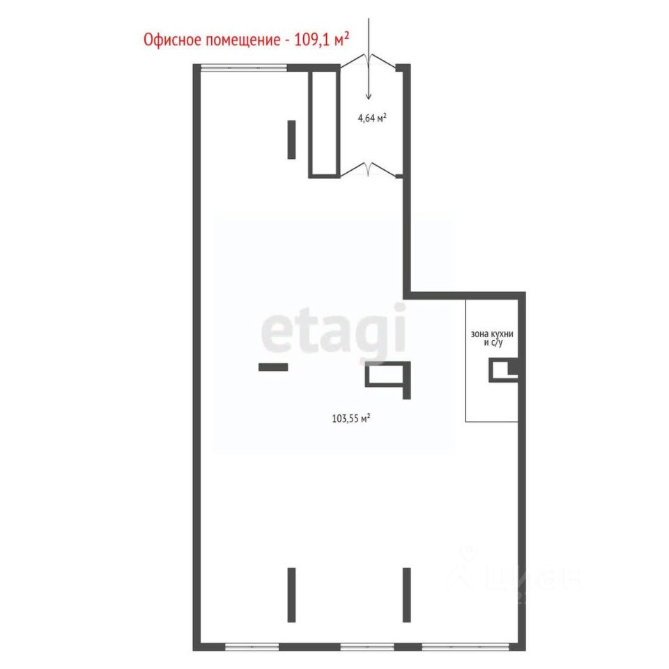 Помещение со свободной планировкой в предчистовой отделке с витражным остеклением.