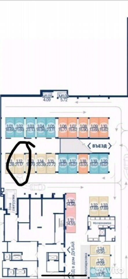 Машино-место вместительное 21м2 а/м+ мотоцикл, находится напротив зоны выгрузки.