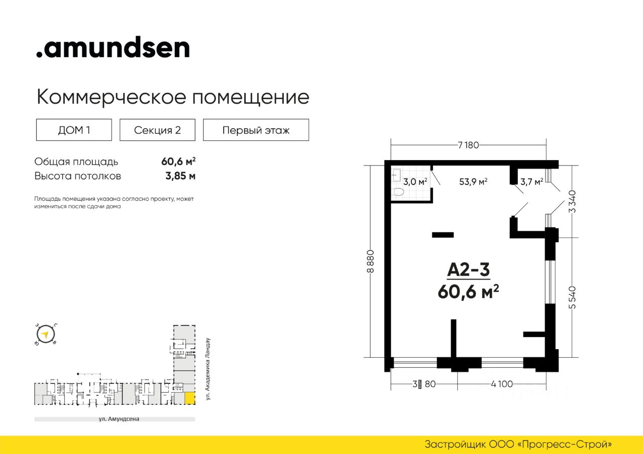 Продается коммерческое помещение в жилом квартале Amundsen от застройщика PROGRESS