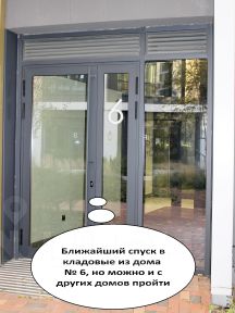 Расположена в 6 подъезде на минус 1-ом этаже напротив выезда из паркинга (со стороны ул. Шейнкмана). Подъезд к кладовым на автотранспорте осуществляется через паркинг.