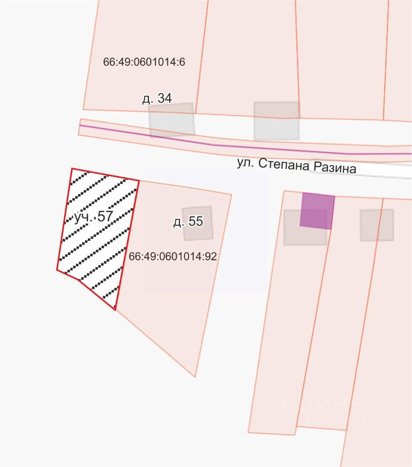 Земельный участок с кадастровым номером 66:49:0601014:375 общей площадью 681,0 квадратных метров, местоположение: Свердловская область, город Кировград, поселок Нейво- Рудянка, улица Степана Разина, участок 57