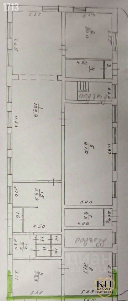 Помещение разделено на несколько комнат и кабинетов. Есть 4 отдельных входа