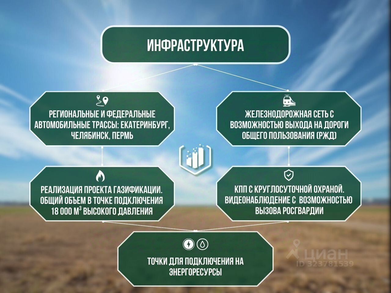 На территории своя железнодорожная станция с тупиками, с выездом на железные дороги общего пользования. Возможность строительства и расширения железнодорожных сетей;